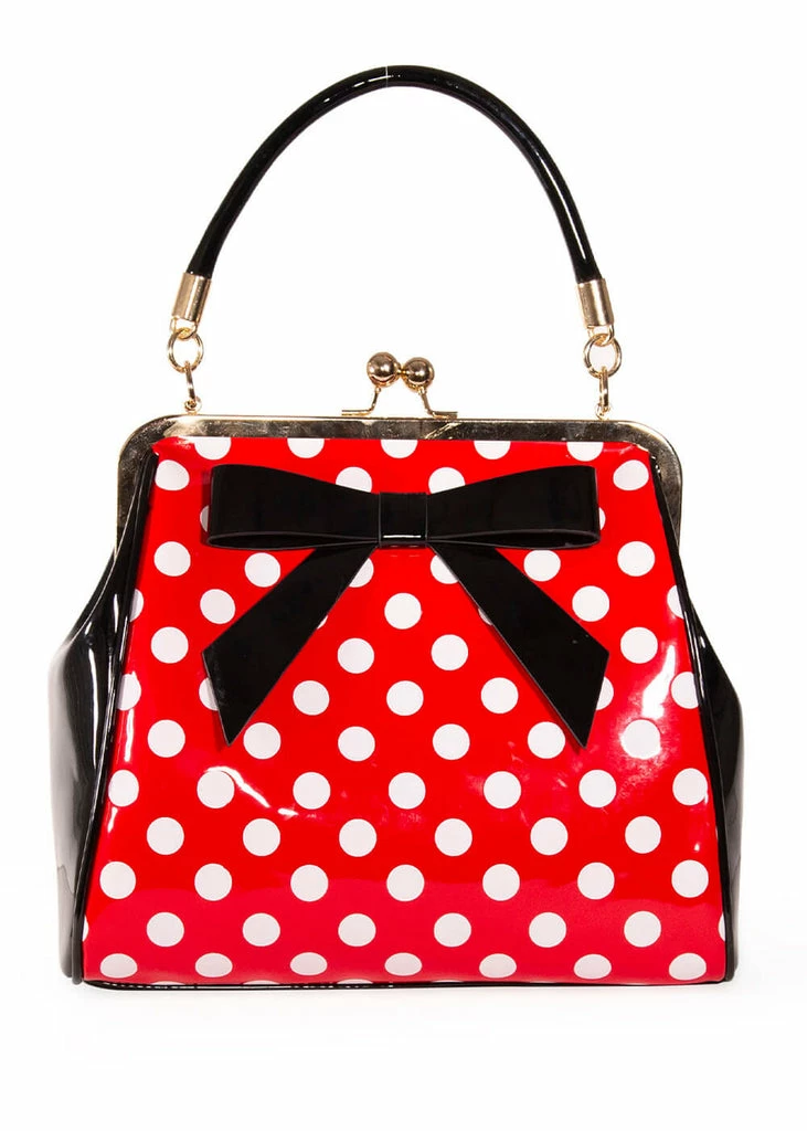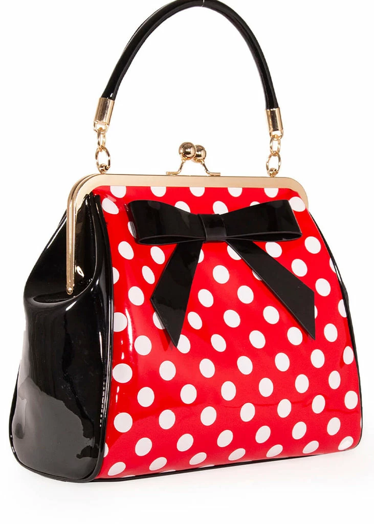 This fine purse is made of shiny patent and the playful bow makes her a fancy model you just can’t miss. It’s big enough for all your essentials, like mobile and keys. On the inside, you find two open compartments and a zipper compartment.