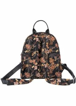 They’re embroidered all over the front, in a mysterious purple… With her width of 31 cm width, she’s nicely spacious: big enough for all your essentials, like a tablet, your phone and a small bottle of water. On the inside, there are 3 compartments, one of which closes with a zipper, plus an additional zipper pocket on the back. She’s made of a high quality faux-leather.