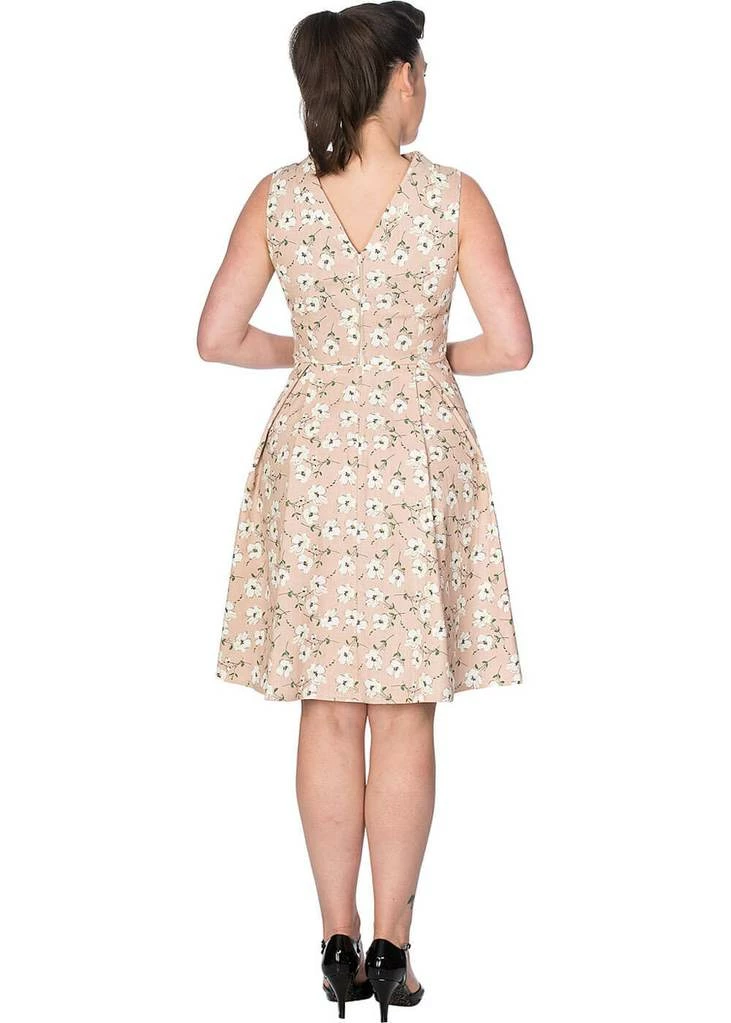 From the waist down she flares out into a playful skirt with pockets which you can wear with one of our petticoats, but it’s just as cute without. With a height of 1,70 she reaches down just above the knee and closes with a zipper on the back.