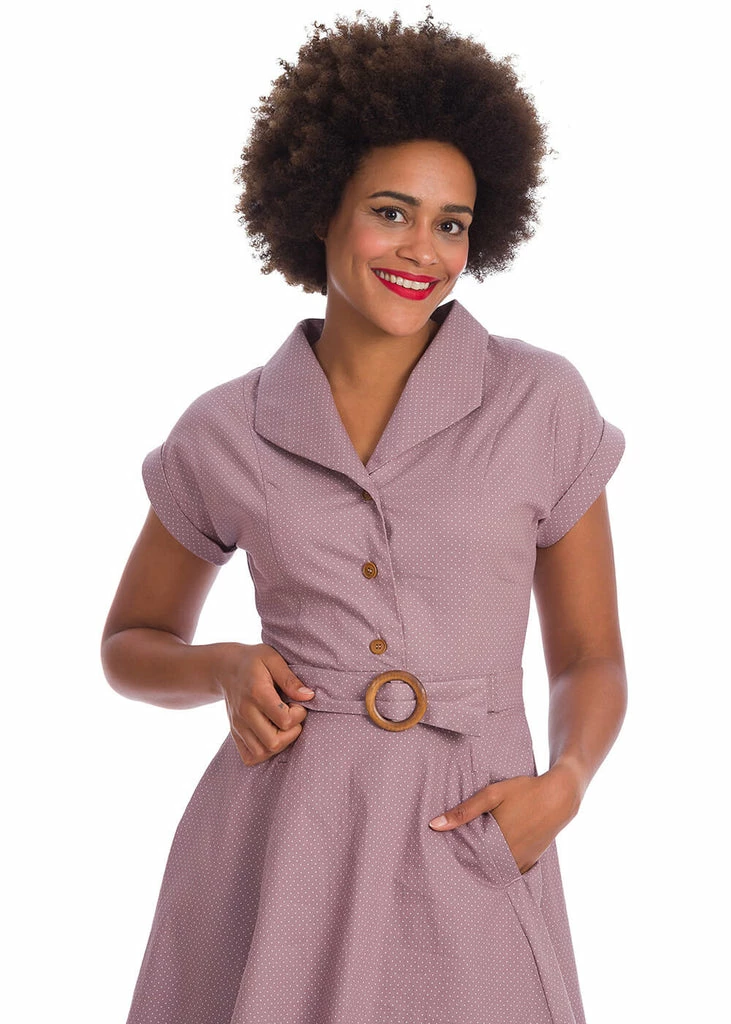 She’s so lovely lightweight and nicely dotted with her fine cotton mix with slight stretch! Her wide collar and rolled-up short sleeves make for the perfect vintage shirt-look.