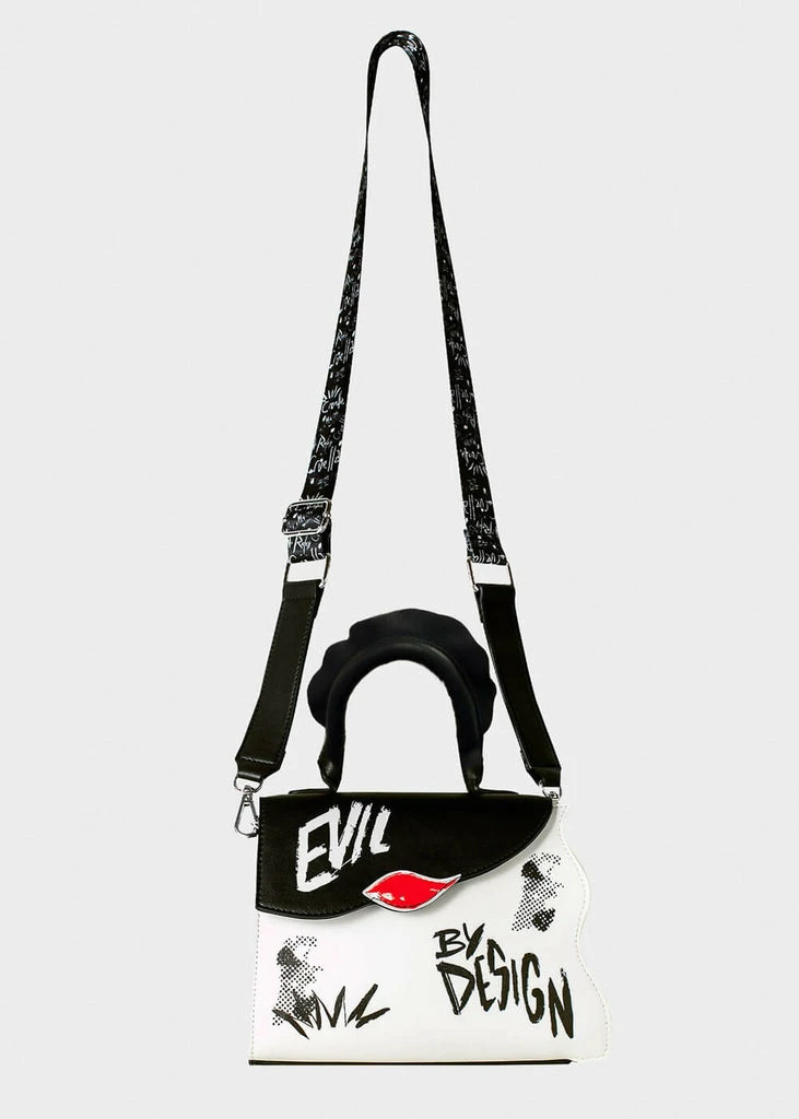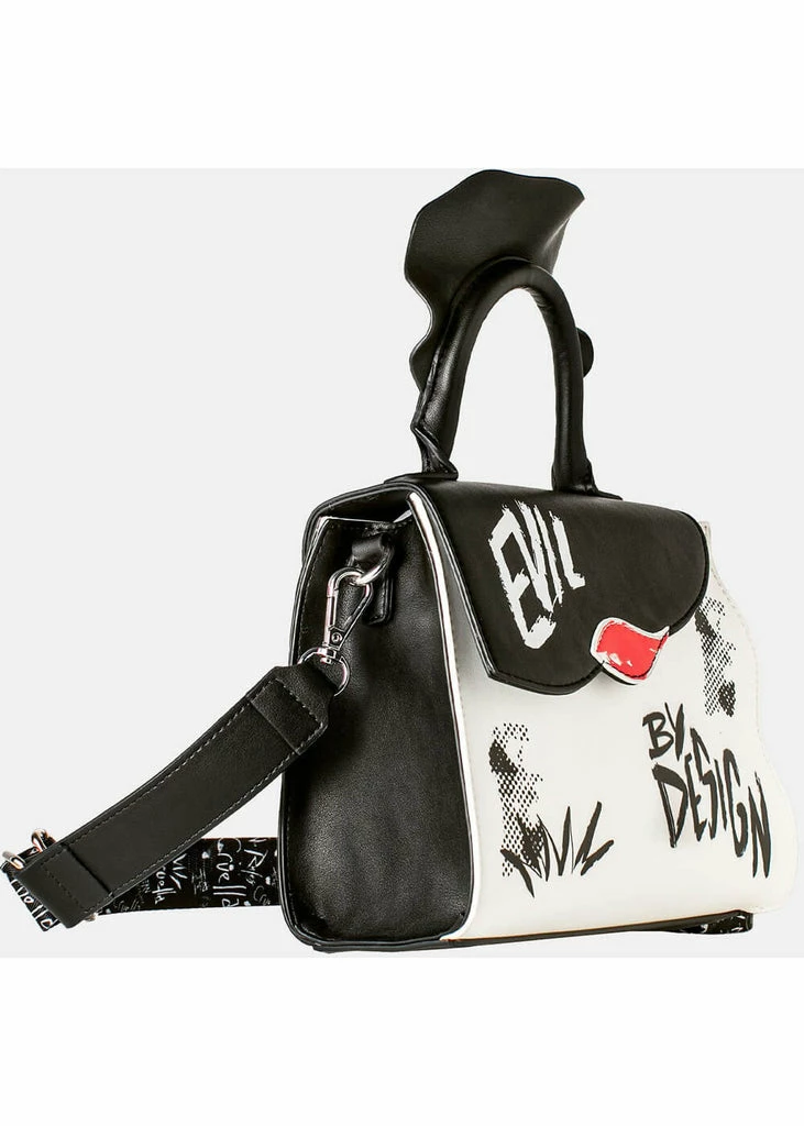 Be ‘Evil by Design’ with the most stylish badgirl of the Disney universe: Cruella de Vil! This cutie is just as unique as her hair style, with a laser-cut ‘curl’ around the handle, that you can hold her with, or sweep her over your shoulder with the detachable strap with Cruella print.