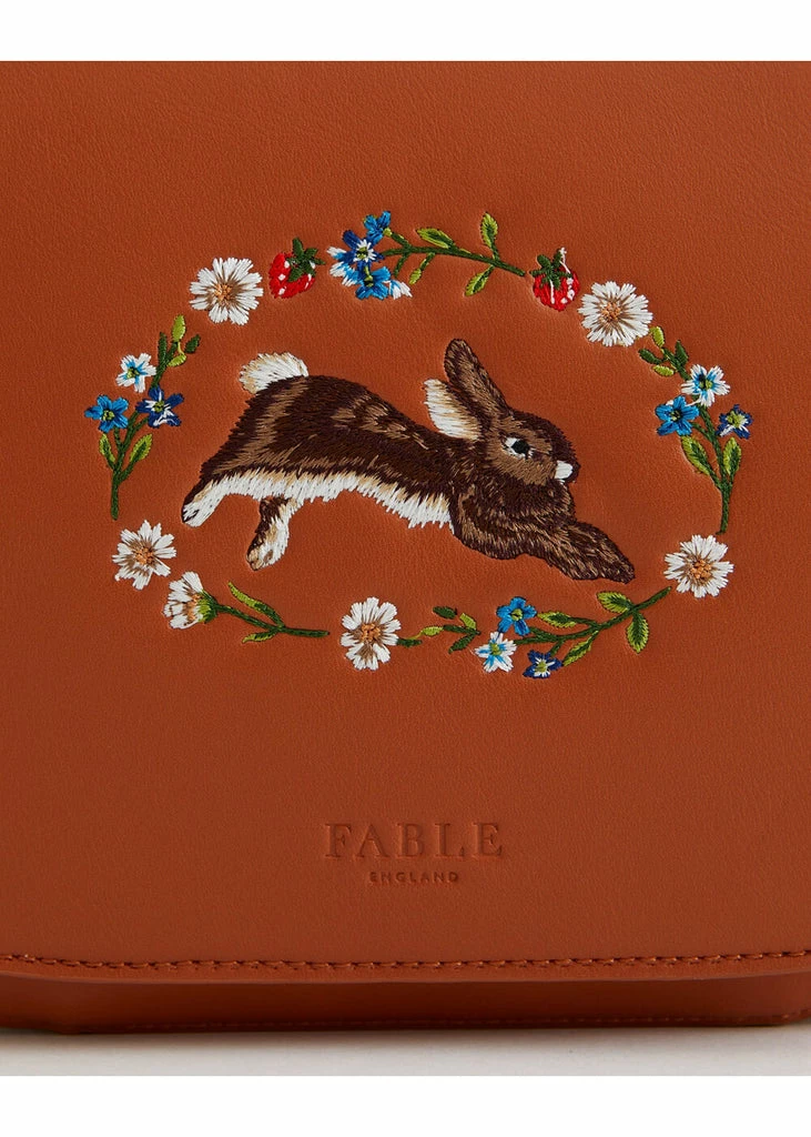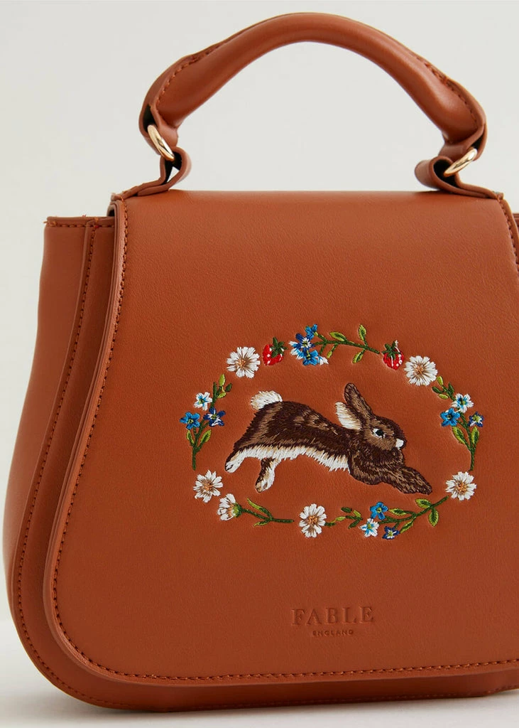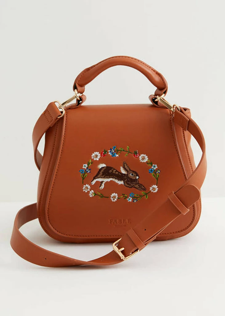 This rabbit doen’t leave your side, proudly embroidered at the front… The inside is lined with polyester. Her width of 24 cm makes her spacious enough for all your essentials such as a phone and wallet (no big sizes). She closes with a zipper on the top and has a pocket on the inside as well that closes with a zipper.