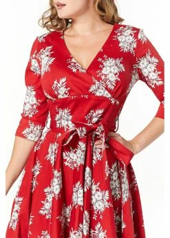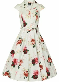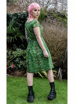 From just above the waist she flows into a full skirt, which is ofcourse lovely to wear along with one of our petticoats for a festive effect, With a height of 1.70 she reaches below the knee and closes with a zipper on the side. She even has pockets!