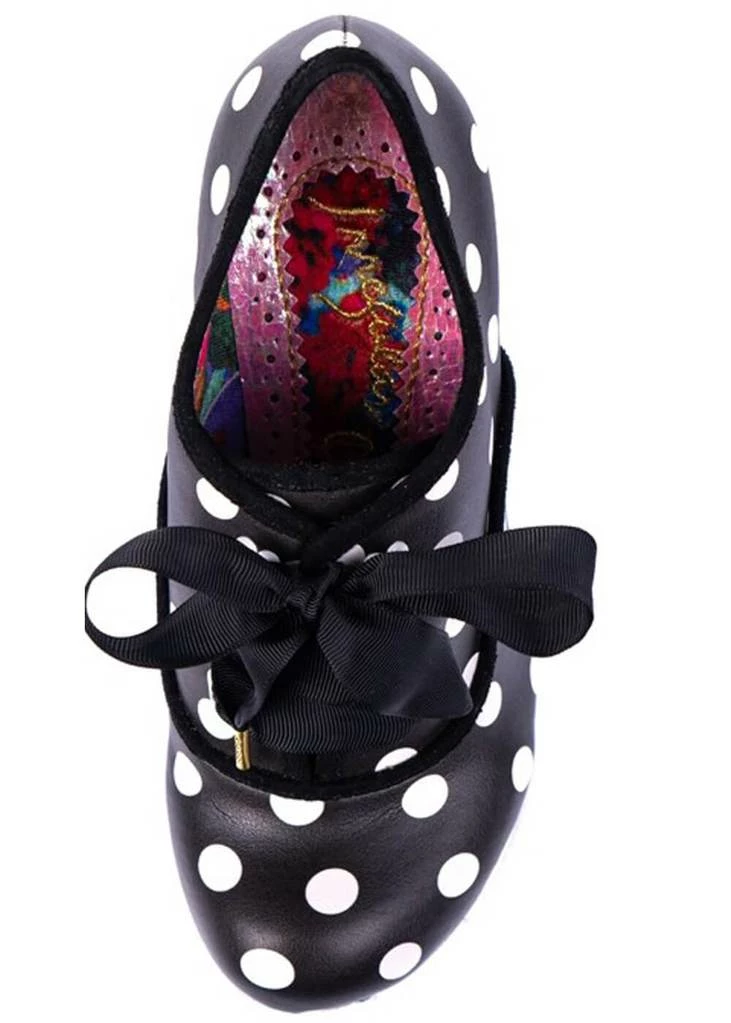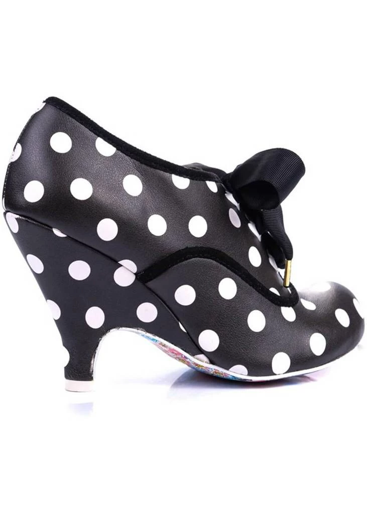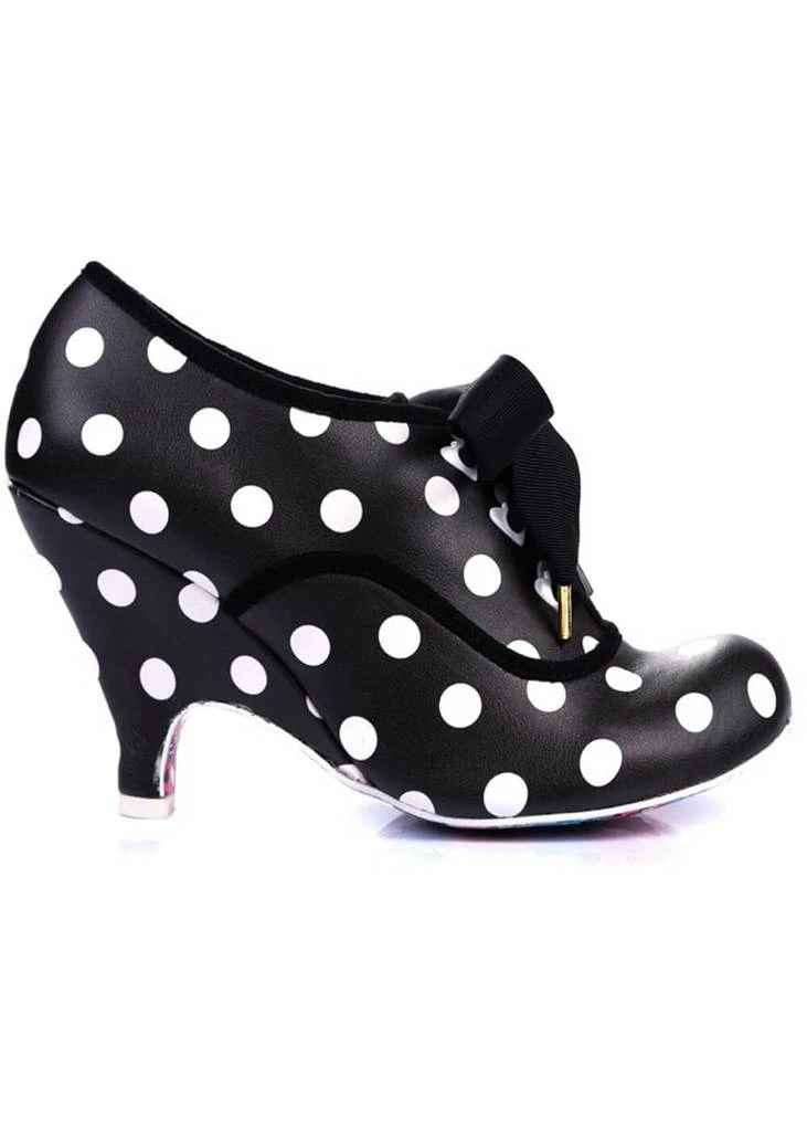 The polkadots can’t be missed, but have you noticed that continues 9,5 cm heel? Woah! She’s made of a beautiful quality faux leather on which the colours are incredibly striking.