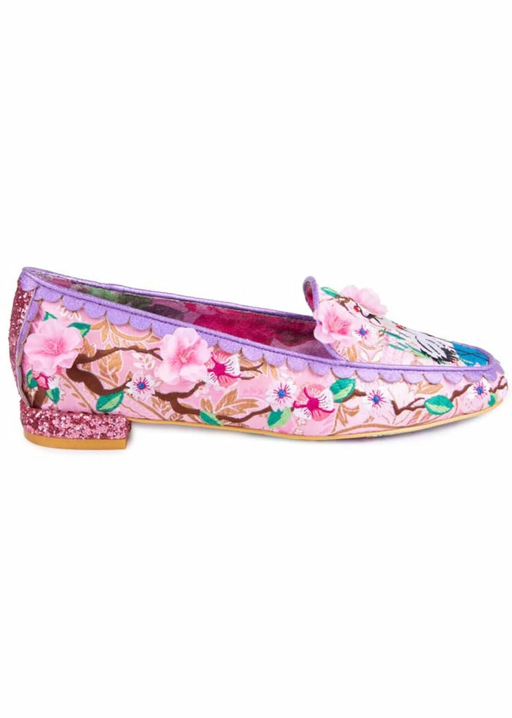 Stunningly embroidered, they’re relaxing on the tips of these brocade coated ballerina’s, just like the picturesque blossoms on the sides.