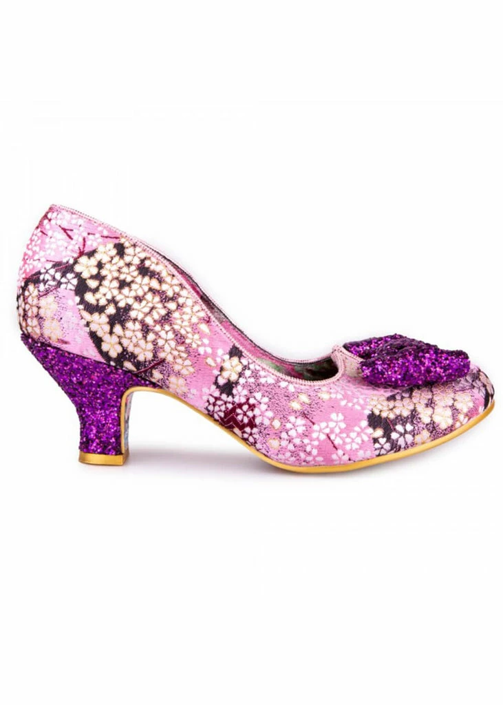 Her wider 5,5 cm is spiced up the Irregular Choice way and covered in glitters, which makes her a joy to the eyes, and (with her soft footbed and the narrowing shape towards the heel) a pleasure to walk on.