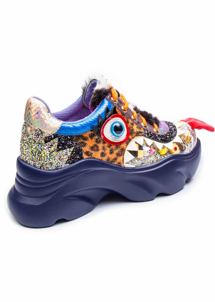 Raver Quaver is, just like most game-heroes, not afraid of anything: they’re even sticking out their tongue to the world, while their big eyes are staring at you! Even on the tongue a large eye can be seen on top of the soft fluff. Behind the tongue is a transparant layer which contains not only glitters, but also little pastries inside, yum yum… An overdose of glitters, and metallic in every colour are the perfect finish.