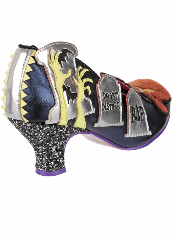 The nicely low 5,5 cm heel (adorned with festive glitters) make her a joy to the eyes and a pleasure to wear. Her soft foot bed has a layer of velvet, making her even more comfortable. Her sole has a playful print that you can protect with one of our special Irregular Choice Sole Protectors.