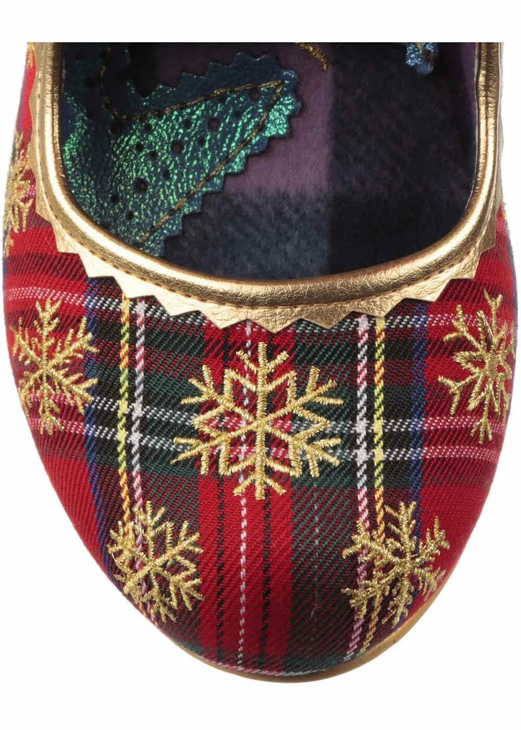 The shoe itself is an absolute beauty, too, with the luxurious tartan, combined with golden waves and stunning embroidered snowflakes, what a sight! By tieing the ribbon in the front, you don’t only turn your feet into cute presents, but also close these gems and keep them in place nicely.