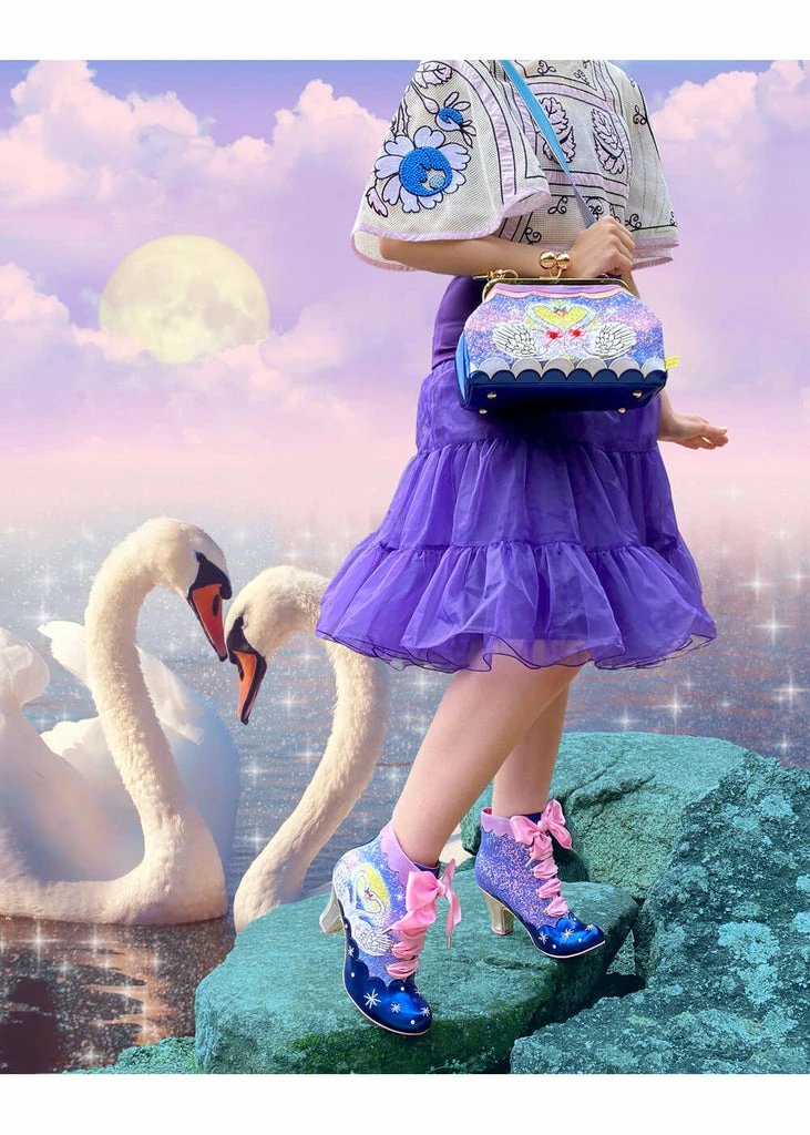 She closes with a satin lace, that, just like the 7 cm heel, is adorned with shiny metallic. The sole has a joyful print you can preserve with the Irregular Choice Sole Protectors. And besides breathtaking designs, this brand is also known for comfort with their soft footbed.