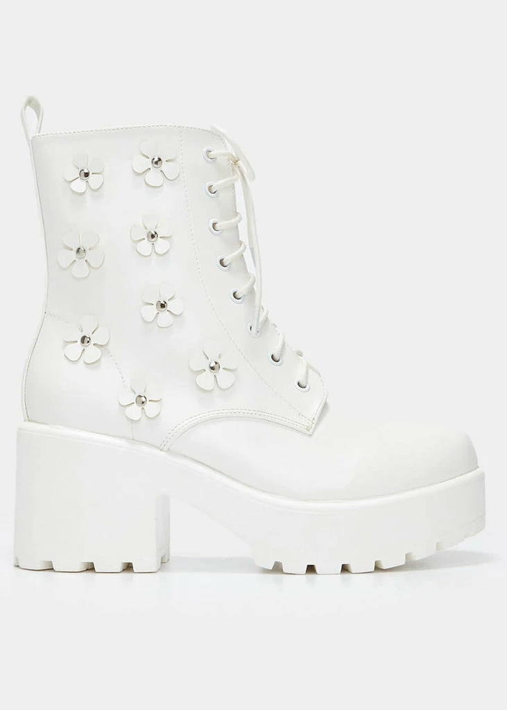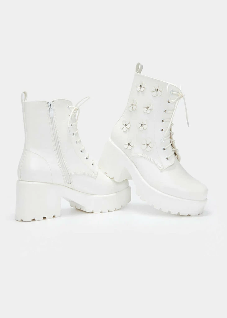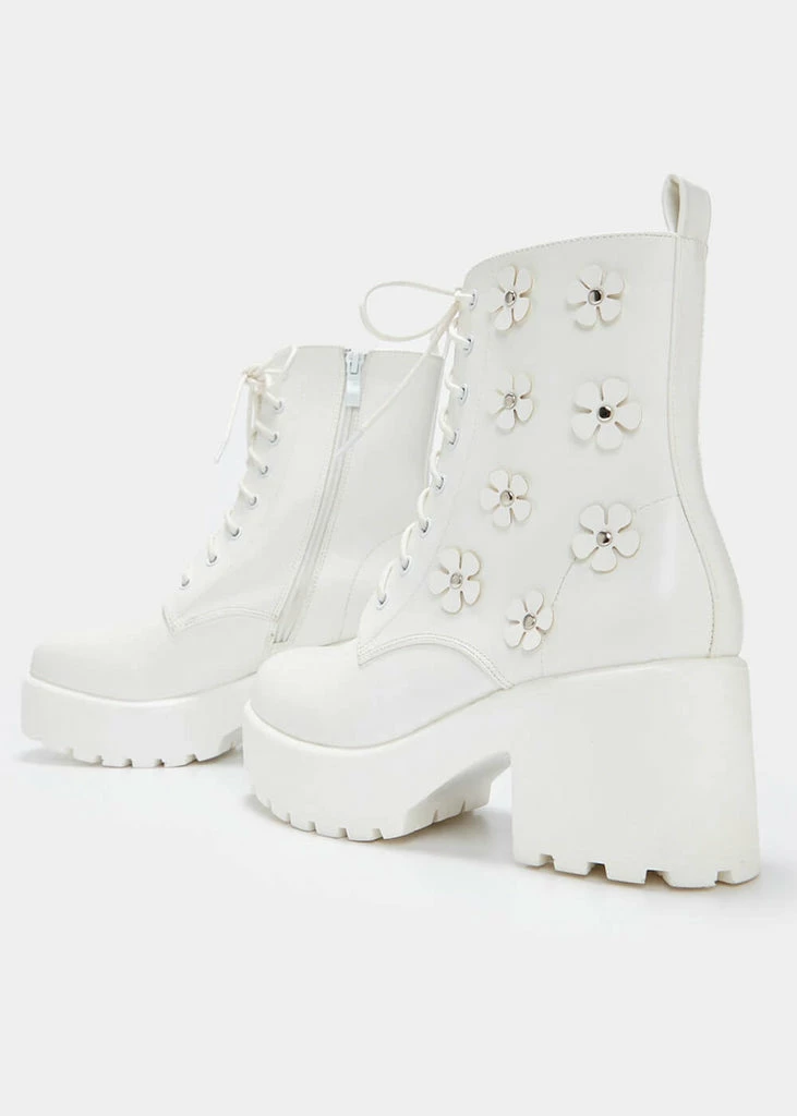 All those Groovy flowers are shimmering in your direction, because of lovely faux-leather! The 6,5 cm heel feels lovely to walk in because of the 3 cm platform. She has laces on the front but fear not, she has a zipper on the side-inside 😉