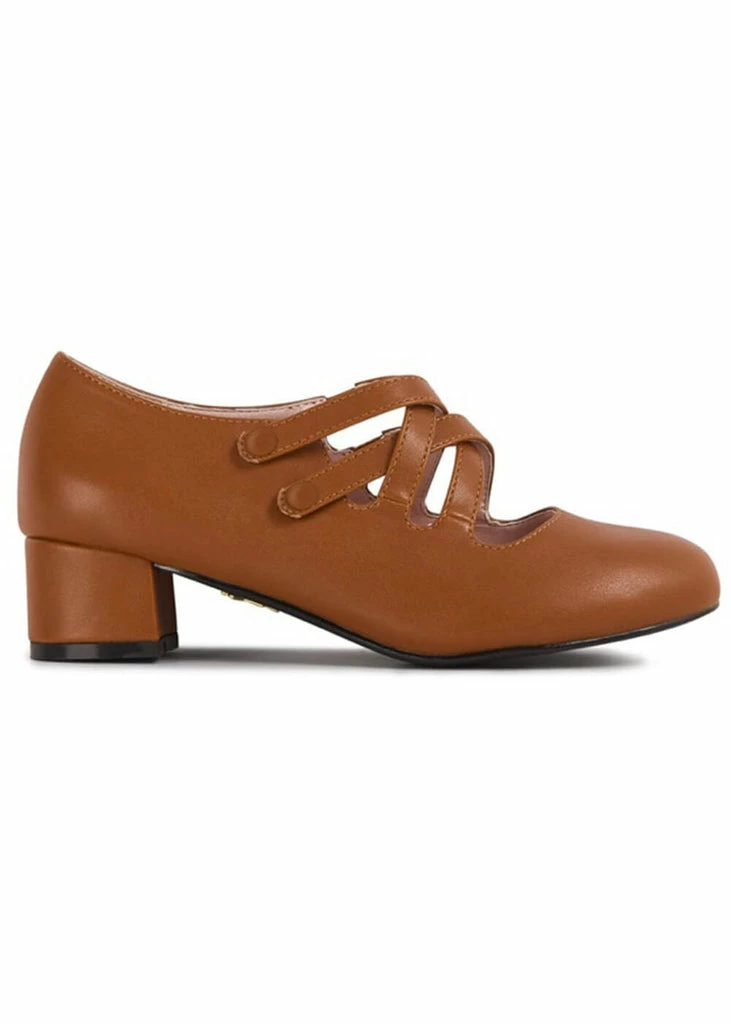 Of her striking crossing straps two are firmly attached with a button and elastic. Her gorgeous brown faux-leather makes Cornelia perfect for all your classic looks, while the block heel is comfortable to walk on: It’s not only nicely wide, but also has a subtle height of 4 cm.