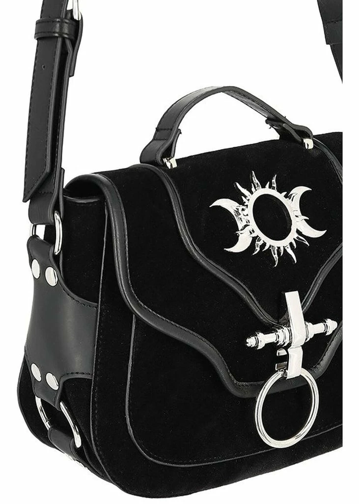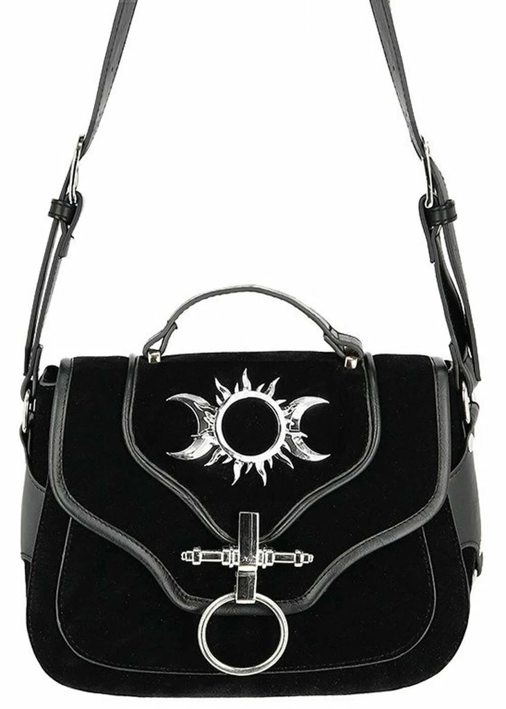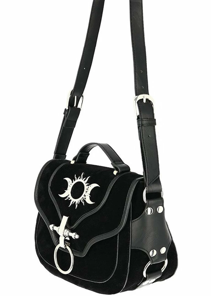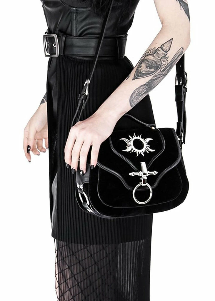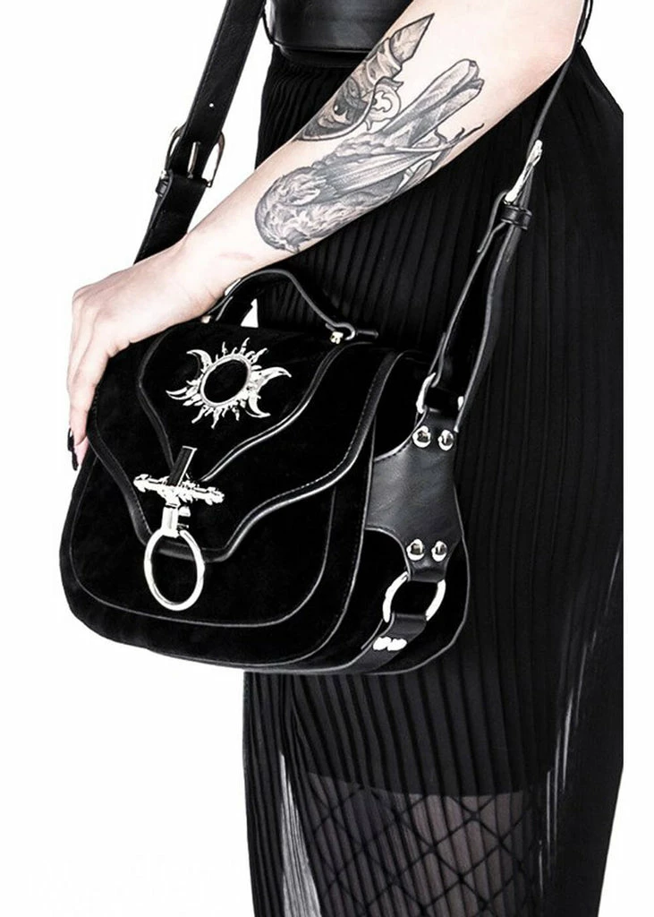 What a dark beauty she is with her faux-suede adorned with silver-colored hardware… With her size of 20 cm width, she is wonderfully spacious: two compartments are big enough for all your most important belongings, like your phone and wallet.