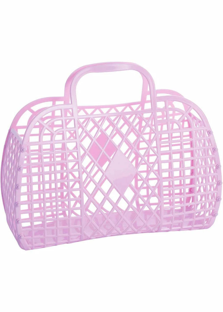 You’re ready to go out with your Sun Jellie basket: picknick, beach or simply to the office! With her size of 25,5 cm width, she’s big enough for a large phone and wallet and all your essentials. She’s also a fun way to store things at home.
